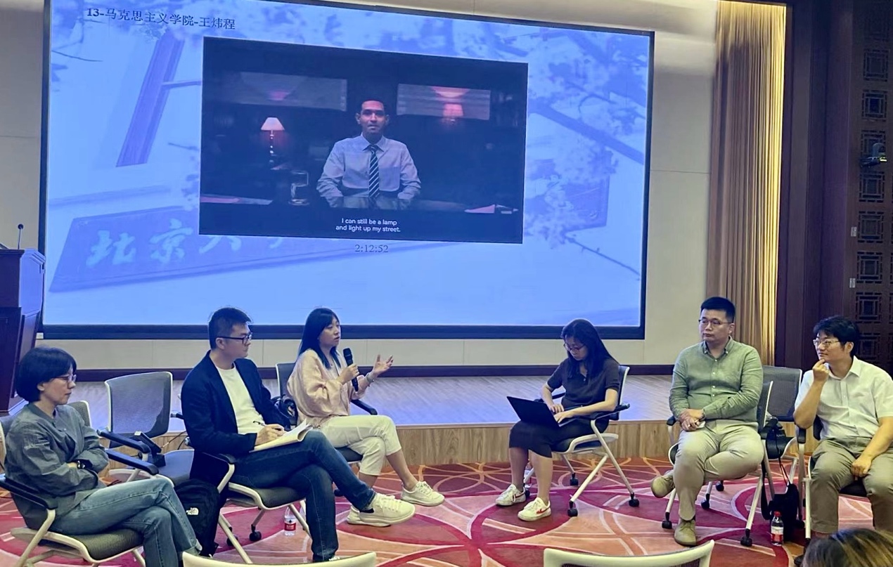 在圆桌会,与谈人和同学们围绕印地语电影《会考挂科》( 12th Fail )情节和镜头叙事,从多视角切入电影文本分享观影体悟。同学们踊跃发言,分享对情节的理解和反思,与谈人对同学们的观点进行回应和延伸,围绕印度电影在中国的传播与接纳、中印电影叙事的共性与差异、印度公务员选拔制度以及印度青年发展的现状、选择与挑战展开对话。