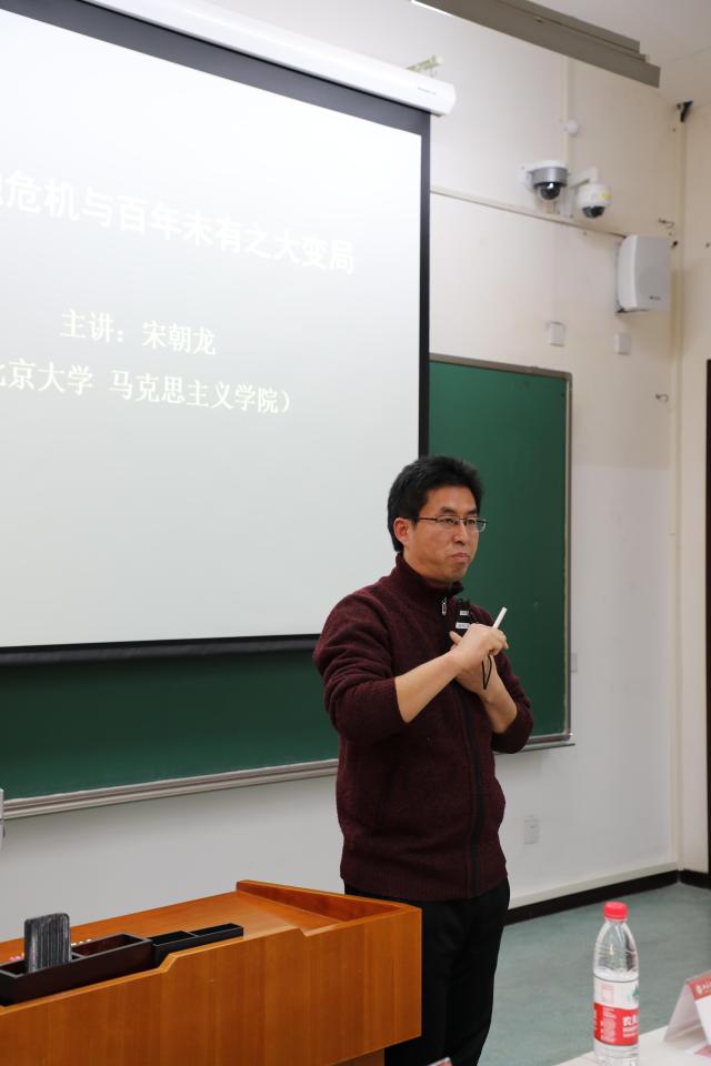 这次活动不仅是团校的开幕式,同时也是团校的开学第一课。宋朝龙老师作了题为《美国金融危机与百年未有之大变局》的马克思主义理论讲座。宋老师以马克思主义经济原理为基础,讲述了当今西方社会中的自由主义、契约精神、资本运行机制、金融危机根源、社会阶层的变化等理论内容,分析了当代中国社会主义市场经济运行规律和制度优越性,点明了在如今的“世界大变局”下,十九届四中全会精神中深刻阐明的道路自信、理论自信、制度自信和文化自信。宋老师的讲述深入浅出、妙语连珠,为同学们夯实马克思主义理论基础、学习如何把马克思主义原理和社会现实相结合提供了范例与指导。