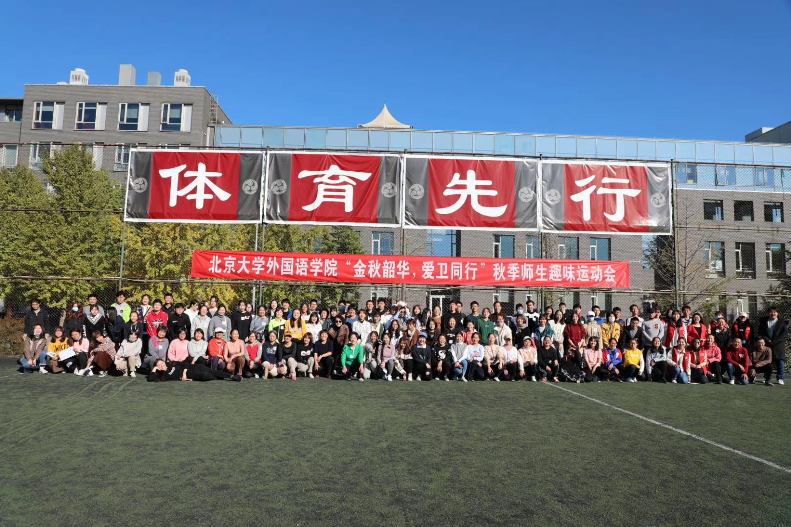 10月23日下午,外国语学院“弘扬伟大抗疫精神,践行爱国卫生运动”主题党团日活动之“爱卫抗疫,师生共进”秋季师生趣味运动会在第一体育场北侧足球场举行。120余位师生斗志昂扬,活力四射,齐心协力地完成了所有的比赛项目,充分展现了外院人的活力与风采。外国语学院副院长付志明、张冬梅,院党委副书记王恒一同参与活动。