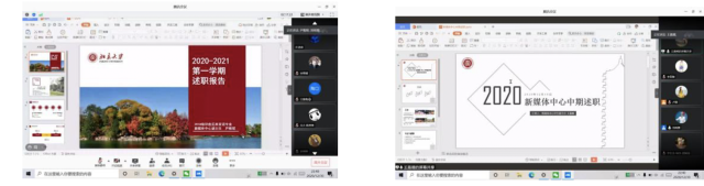 大会的第四个部分是新媒体中心负责人作述职报告。媒体中心运营部、新闻采写部、多媒体部负责人首先进行发言,各部门负责人分别从本部门的工作内容入手,总结成长、分析问题、做出工作展望。此外,各部门分管学生副主任范斯文、尹楷珺与王嘉璐对新媒体这一学期的收获与成长进行了总结,反思新媒体中心运营中存在的问题,并希望能够从问题角度出发,推动新媒体中心更好地成长。