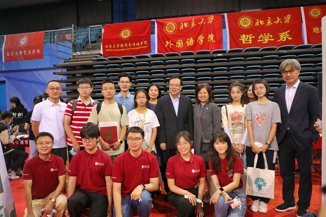 10点20分,校长龚旗煌,党委常委、副校长王博,党委副书记、副校长宁琦等校领导一行来到外国语学院迎新接待站关心新生报到情况,亲切询问新生基本情况,鼓励新生尽快适应大学生活,努力学习,并与现场师生合影留念。
