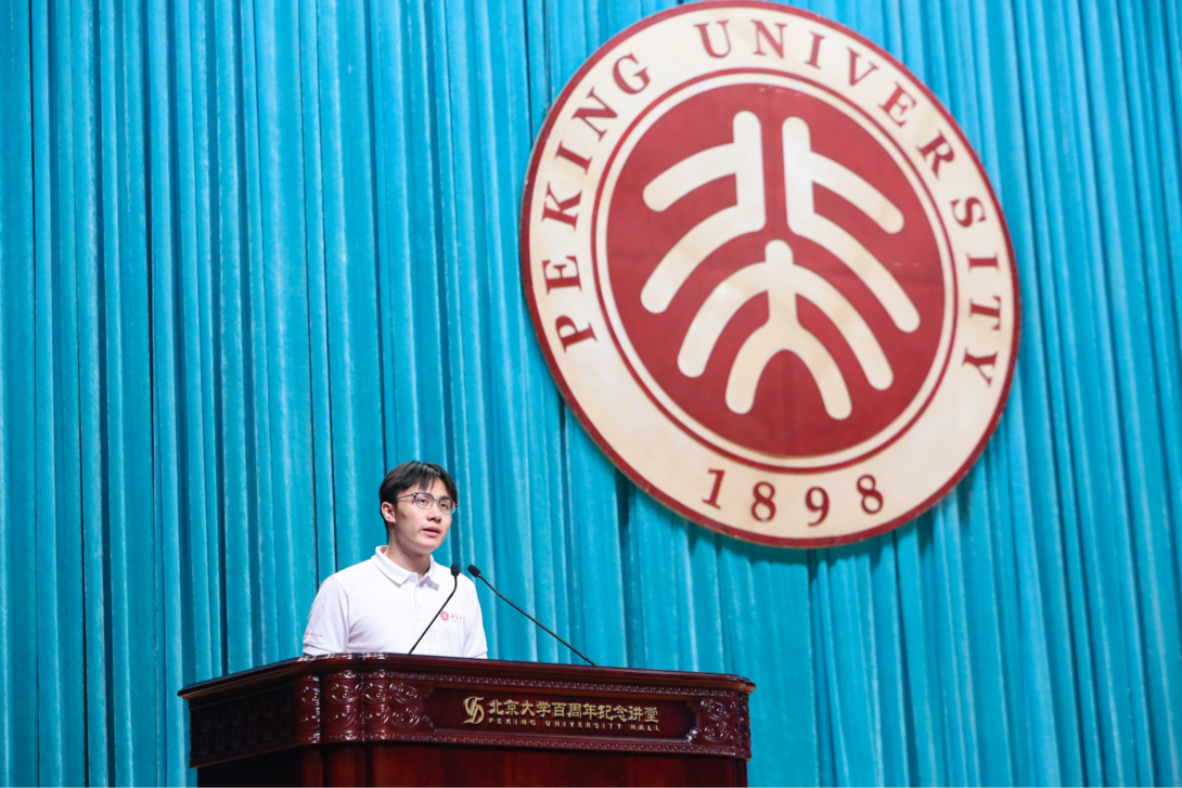 硕士生新生代表、东南亚系2022级的谭博特,深情回忆自己与北大外院的缘分。他期待在外院尽情进行学术探索,牢固基础、发掘兴趣,学习世界其他国家民族所特有的文化模式与思维方式;他回顾了参加新中国成立70周年庆祝大会的经历,立志在外院学术探索的同时,不忘家国,承担责任。他与大家共勉:执着所爱、踏实求学、简单生活、真诚纯粹,一如入学之初的少年模样。