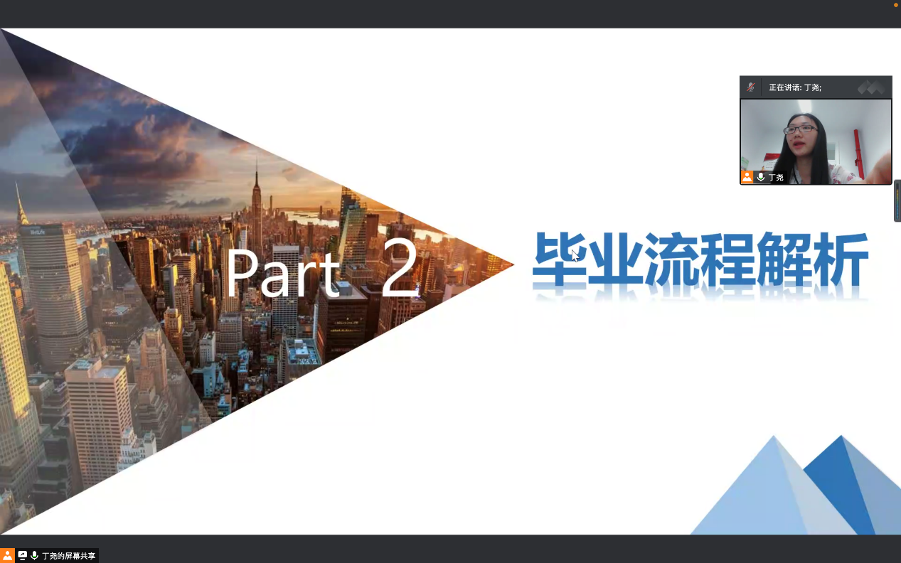 首先,丁尧老师对就业名词以及具体的就业、毕业流程手续和注意事项进行了细致的介绍,并提醒同学们认真对待毕业手续,慎重签订三方协议,及时关注就业招聘公众号和微信群的通知,为顺利就业和毕业打下良好基础。