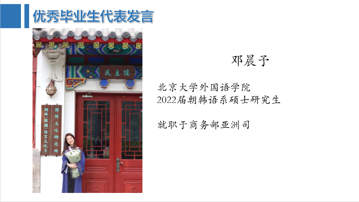 9月16日下午,MK体育在线2023届毕业生大会于线上举行。外国语学院党委副书记王恒,北京大学职业咨询师、信息科学技术学院团委书记、外国语学院19级本科生第二班主任吕媛,以及外国语学院学生工作办公室各位辅导员出席大会;此外,2021届本科毕业生宋一鹏、2022届硕士毕业生邓晨予作为外国语学院的优秀毕业生代表也出席了本次大会,向毕业年级学生分享就业经验。学院2023届本、硕、博应届毕业生参加大会。
