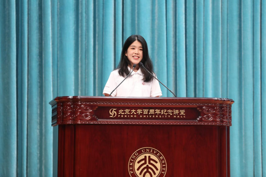 2023级西亚系本科生刘果首先表达了与众多优秀同学相聚于北大外院的欣喜。她认为语言是打破隔阂、照亮黑暗、联结孤岛的那束光,可以在个人与个人之间、国家与国家之间、民族与民族之间、现代与传统之间建构联系。不同的文化水系虽各有其道路,但是最终都将归于大海。她希望能够通过语言将彼此连结,书写共有的蓝天。