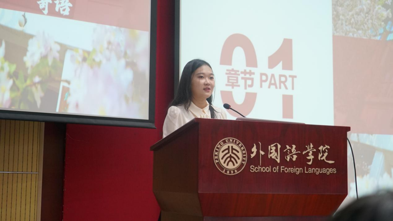 学院副院长付志明老师为新生见面会致辞。他首先对全体新生表示祝贺,欢迎大家来到北京大学,成为一名外院人,正式开始大学生活,他对新生们提出了几点期望。首先同学们要做好自己的大学生涯规划,平衡学习与生活,找到属于自己的未来发展方向。其次,要认真遵守校规校纪,规范自己的言行,牢记北大人的责任担当。再次,作为外国语学院的学生,应认真学习专业知识,苦练语言本领,讲好外语,向世界传递中国声音。最后,他表达了对新生同学们燕园生活的美好祝愿。