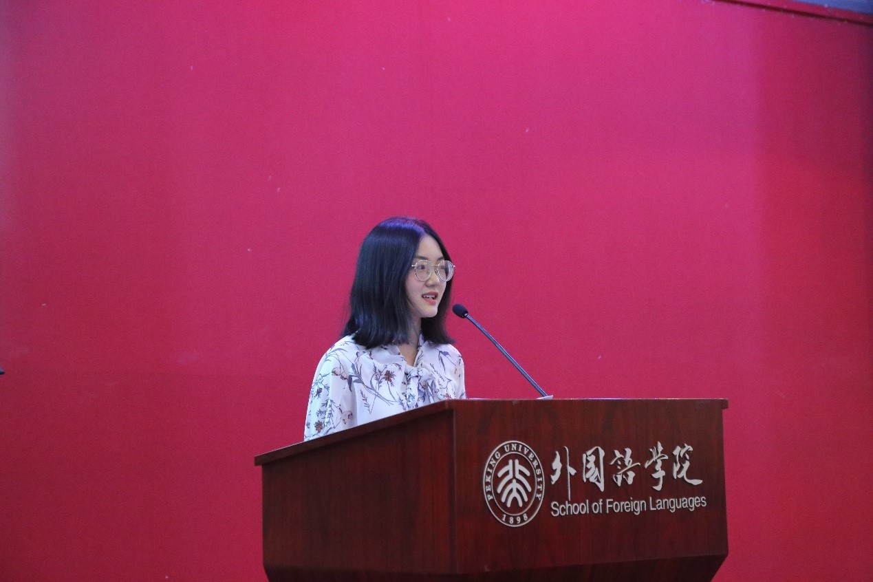 2018级俄语系本科生刘婧涵、2018级英语翻译硕士门雪洁分别代表本科新生和硕士新生发言。刘婧涵分享了初见燕园同窗的情谊以及延庆军训的体悟,表达了自己“学为兼济天下”的责任感与坚持理想的赤子之心,愿多年之后同学们依旧胸怀壮志、少年意气。门雪洁则与大家分享了自己圆梦北大的心路历程,希望同学们不忘语言学习的初心,脚踏实地,不负韶华,永远是那个勇敢追梦的少年。
