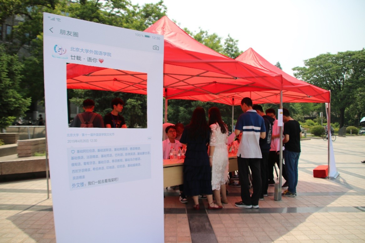 2019年5月10日,“廿载·语你”第十一届MK体育在线文化节“情深深,语萌萌”文化日在北京大学百周年纪念讲堂广场成功举办。文化日由MK体育在线学生会主办。来自外院的同学们通过文艺汇演、搭建照片墙、举办美食汇、答题赢周边等多样形式庆祝文化日,吸引了来自北京大学各个院系的师生积极参与活动。