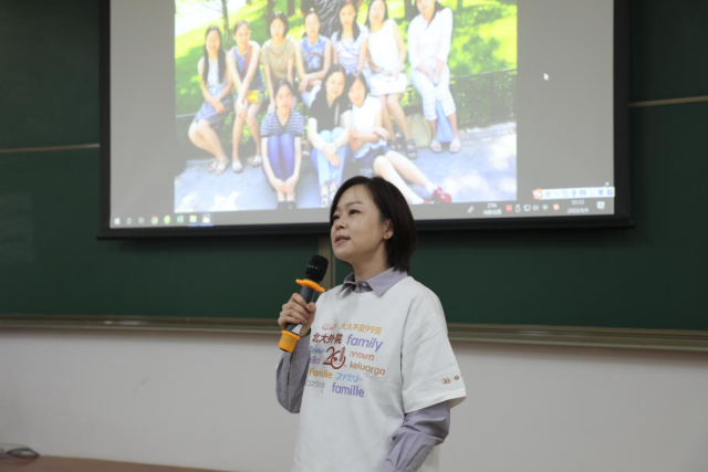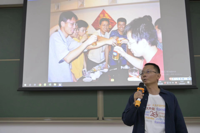 在分享环节,各位校友都打开了话匣子。校友们回忆起了大学生活时的趣事,一点一滴的小事在如今看来显得弥足珍贵,引发各位校友的阵阵欢声笑语。校友们分享了毕业20年以来的人生经历。从初入社会到组建家庭,再到如今同学再聚,岁月匆匆,众多感悟涌上心头。校友们都表达了对大学校园生活的怀念、对燕园的怀念、对同学情的珍惜。德语系校友表示,毕业20年之后同学再聚,机会十分宝贵,特地从德国赶回学校;英语系的校友分享,工作之后发现,人生最快乐的时光还是读书的日子,今日能在校友会上看到熟悉的面孔,十分感动;法语系的一位校友回忆起当年和同学们一起去拜访季羡林老先生的往事,这位校友说道,在工作多年之后,对季老先生当时的教导嘱咐也有了更深刻的理解。还有其他校友分享道,人生总是不可预料,大家都在为未知的X而不断摸索向前;珍惜身边的缘分,珍惜同学的情谊……在分享的最后,校友们都期待着将来能够再聚,表达对同学们的祝福。校友秦杰放映着校友们曾经在燕园的照片,照片中青涩的面庞勾起了大家更多的回忆。台下的校友们吃着茶歇,听着同学们的分享,场面其乐融融。