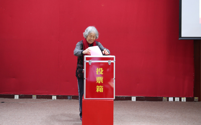 (年龄最大的代表之一 —— 郭秀芸同志投票)
