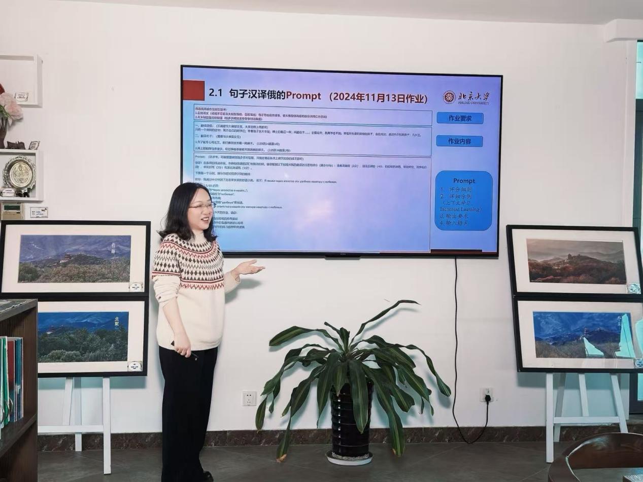 俄语系刘淼长聘副教授分享了其将国家级科研项目反哺教学的成果。她带领团队基于大语言模型,构建了一套精细化的翻译质量评估体系,并将语言学理论转化为高效的“提示词”,应用于研究生翻译与写作作业的半自动化批改。该模式既保证了学术深度,又极大提升了教学效率,展现了科研与教学融合的强大潜力。
